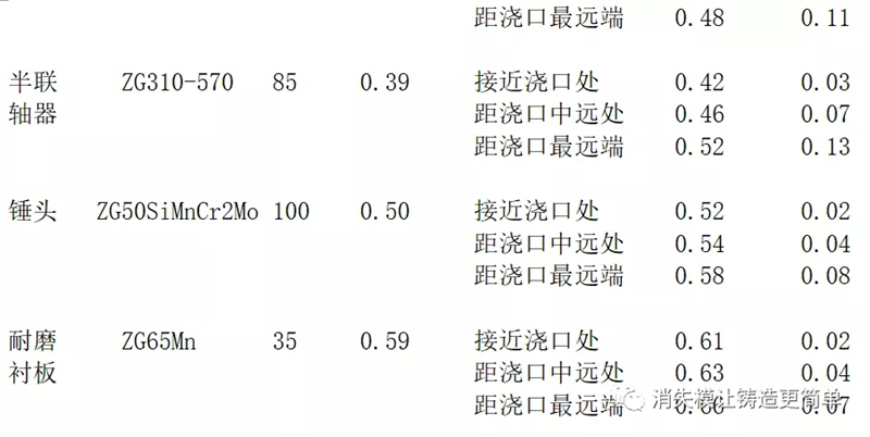 試驗材料為汽車、工程機械、煤礦機械和破碎機械用消失模鑄鋼件及中頻爐熔煉的原鋼水,材質(zhì)為C<0.65%的鑄造碳鋼和低合金鋼,其中有形狀較復雜和壁厚較大的鑄件,也有形狀相對簡單的板類和筒狀鑄件。